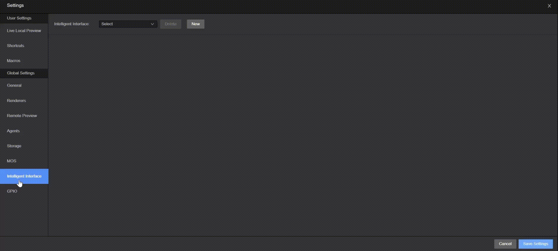 http://[serverIP]:5550in your browser. - Go to Settings → Intelligent Interface.