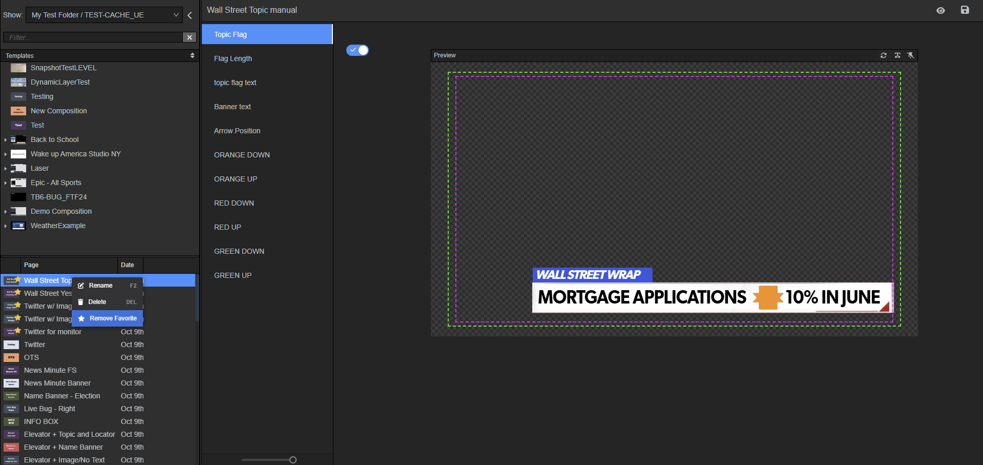 The Preview window in the MOS Browser provides several controls that help operators verify graphics before taking them on-air.