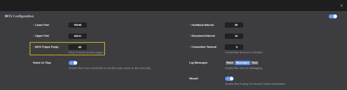 To establish a MOS connection both the NCS and Studio need to be configured under Setting → MOS.