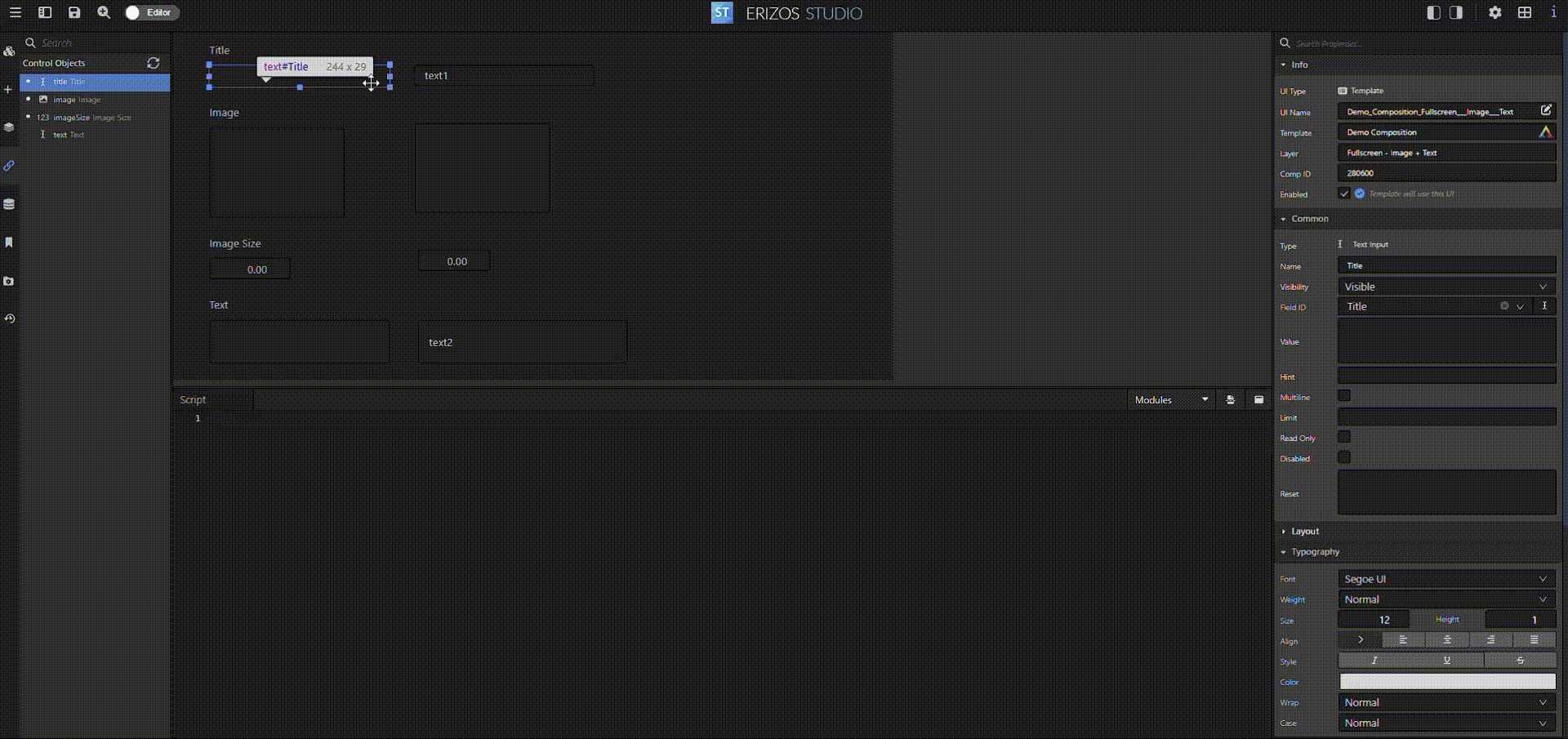 Starting from version 3.4, UI Builder introduces drag-and-drop linking between Control Objects and components inside the Editor.