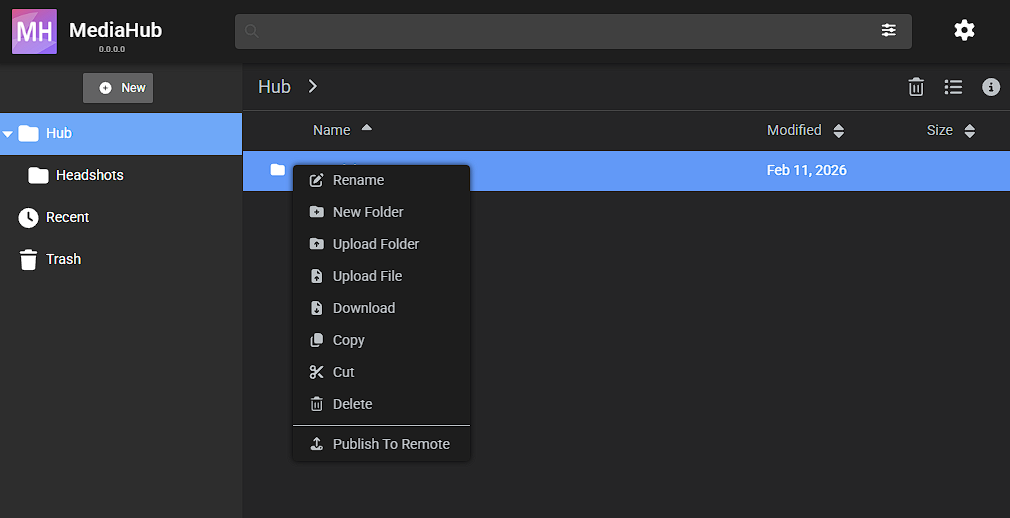 The Publish to Remote feature allows you to publish assets or folders from one MediaHub instance to another remote MediaHub server.